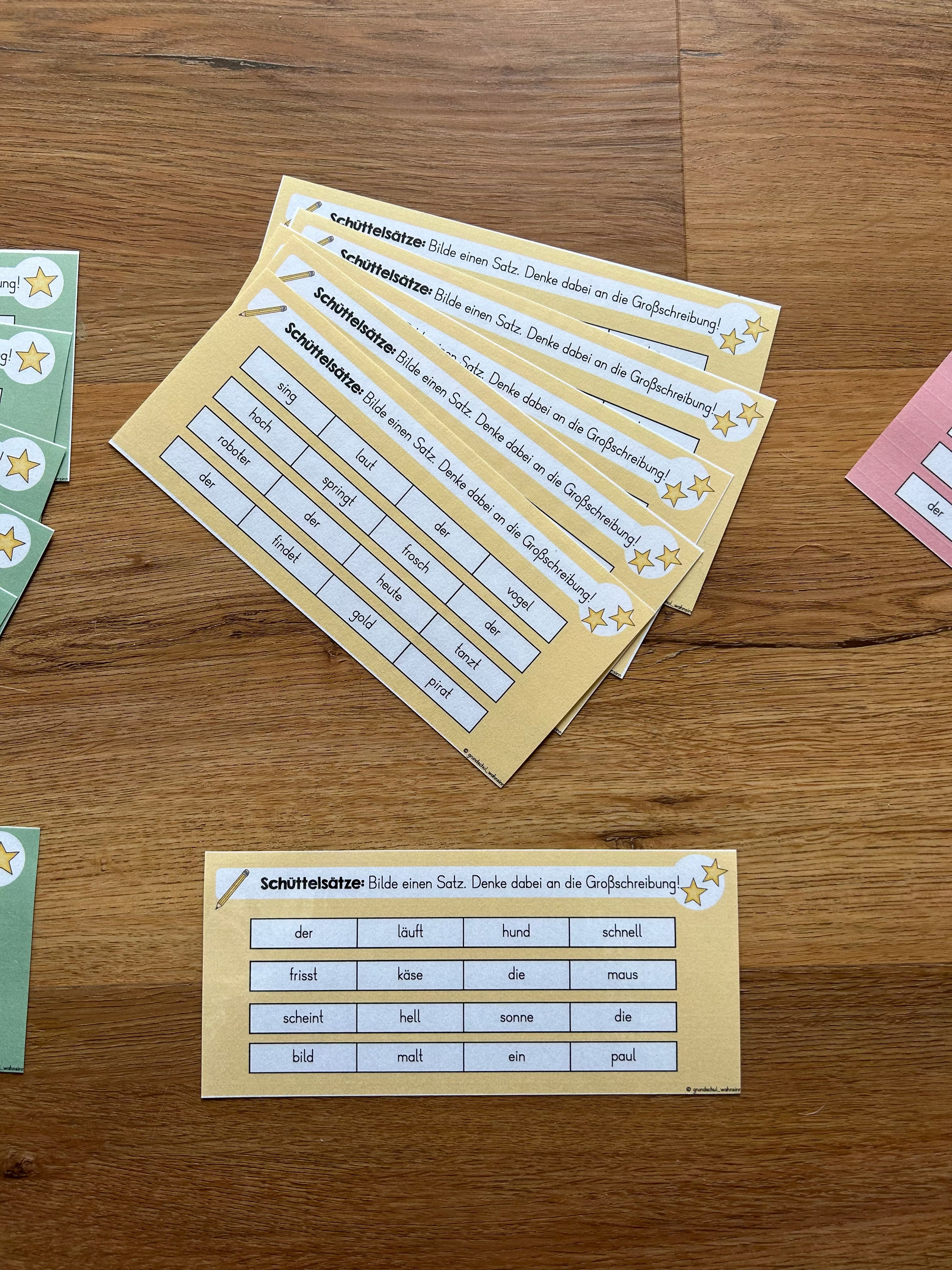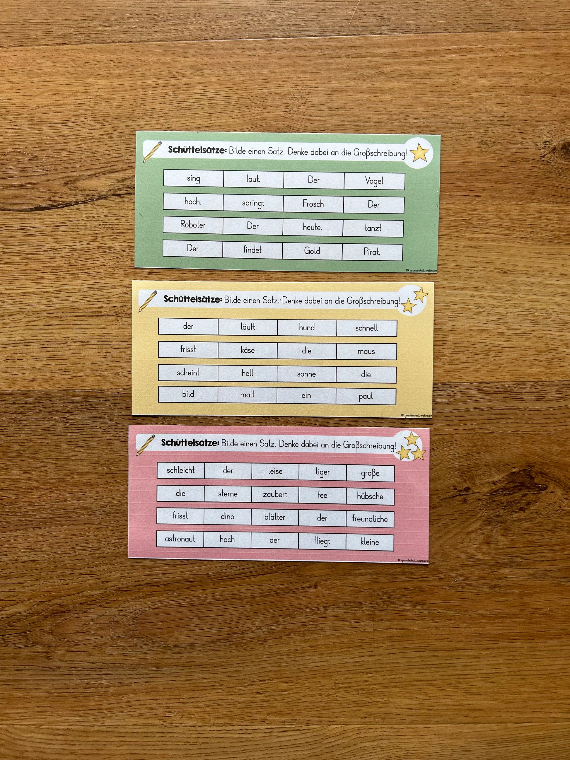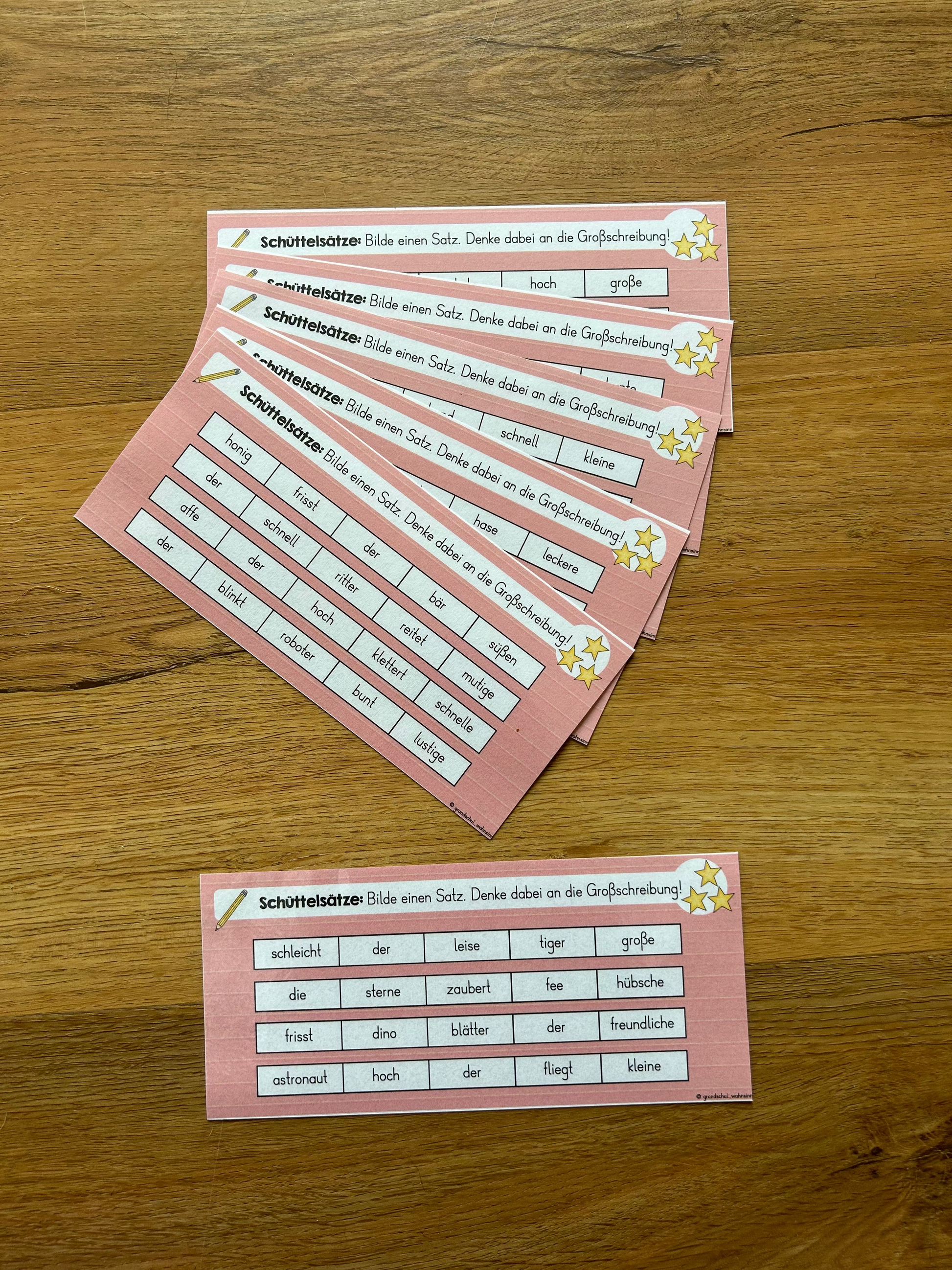 In diesem Material findest du 18 Freiarbeitskarten mit Schüttelsätzen zum Thema Großschreibung, Satzbau und Satzzeichen.