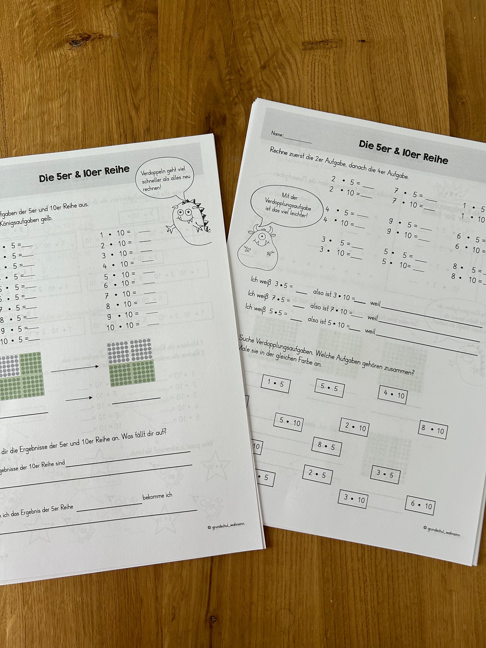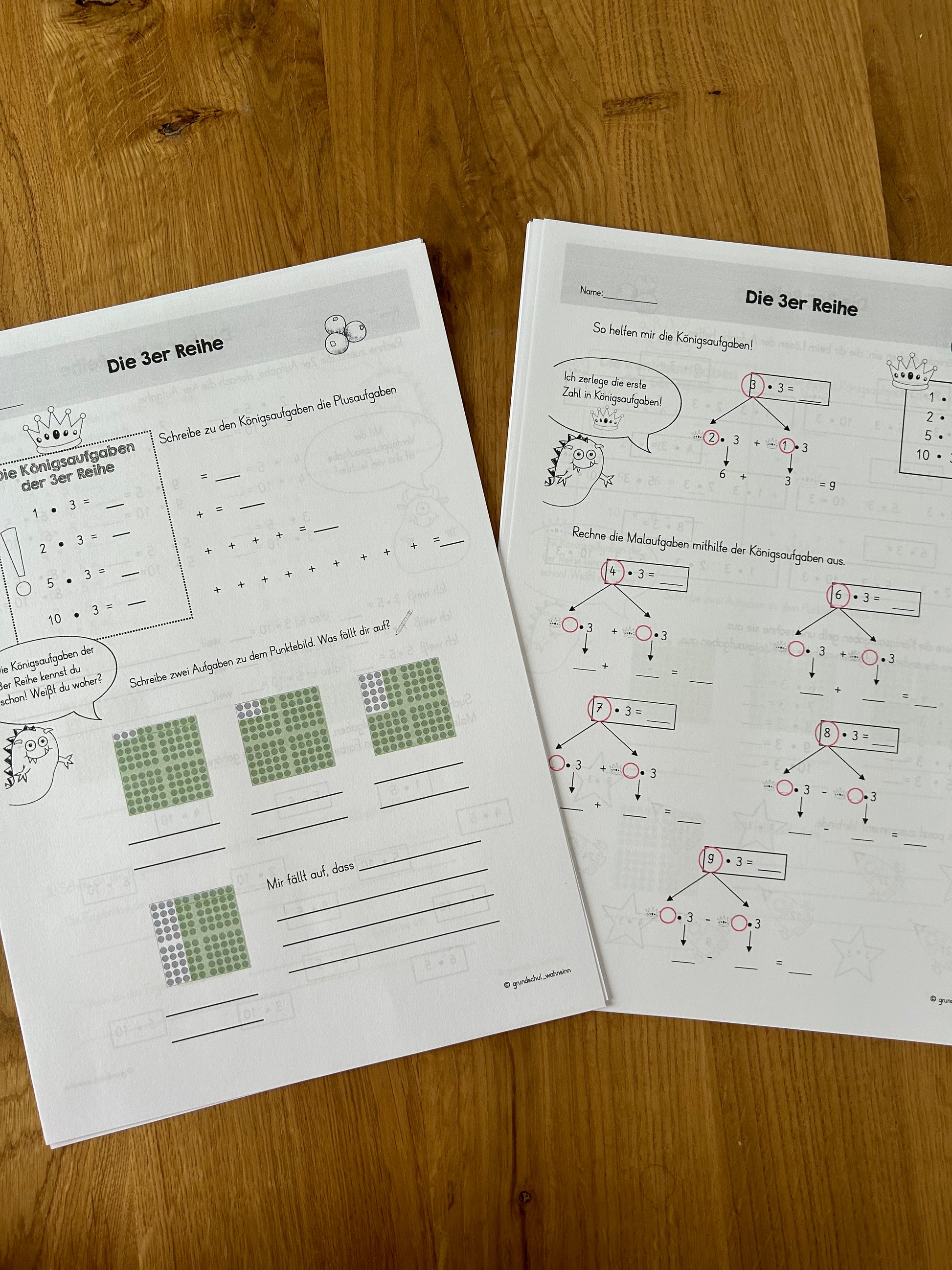 • für jede Einmaleinsreihe 3 aufeinander aufbauende Seiten: